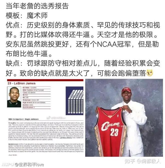 小前锋詹姆斯的话,可能我的这个结论是目前所有球评人里面第一个这么说的:詹姆斯是一个看起来很美很全能,但适配性和建队难度很大的球员。由于詹姆斯在年轻时候就是大包大揽的风格,且无球跑位和持球急停始终并没有真正如乔丹科比那样融会贯通,所以他就需要一个能在关键时刻打攻坚球的二当家来辅助。很简单,因为关键时刻尤其是高端局,对面是不会给你放很轻松的篮下进攻机会,而詹姆斯的进攻在出了三秒区之后非常不稳定,所以对于詹姆斯而言,攻坚球他的表现在历史级别大拿里面真的可以说是比较菜的一档。而在防守端,詹姆斯属于协防一流,断帽数据也比较好看,但问题是詹姆斯的单防就是明显的比较差劲,别的不说,在高端局中让对位的球员四次拿到总决赛MVP,足以体现之前球探报告的准确程度。