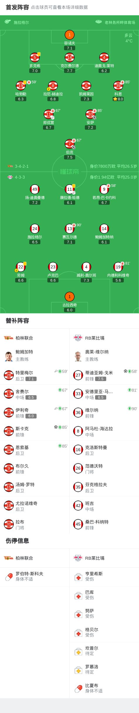 北京时间12月13日德国足球顶级联赛 联赛 第14轮,柏林联合主场对阵RB莱比锡。柏林联合伯克破门,安萨破门,斯卡克破门。RB莱比锡蒂迪亚姆-戈米破门。最终比分柏林联合 3-1 RB莱比锡。